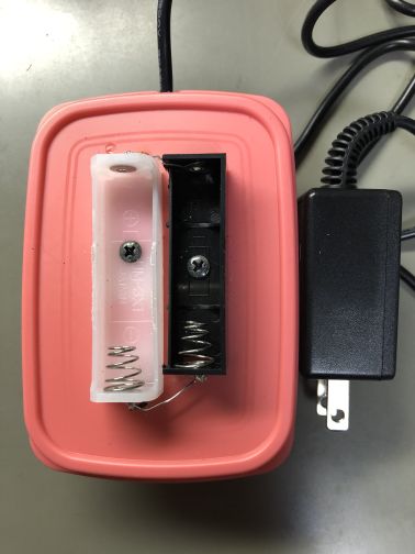 100円ショップで売っているおかず入れに,単三と単四の電池ホルダーを付けました。単四のホルダーは一つのみのものが手に入らなかったので,2つ直列になるホルダーを真ん中で切断して取り付けました。(ホルダーを留めるビスは皿ねじに変更する予定)