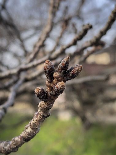 3月に入りました。岩倉市の五条川の桜の様子です。今年は暖かい日が多く,例年より1週間ぐらい早く開花が始まる予想です。開花予想が3月17日ごろ,満開が3月27日ごろのようです。しかし,まだまだ桜の蕾は堅いようです。