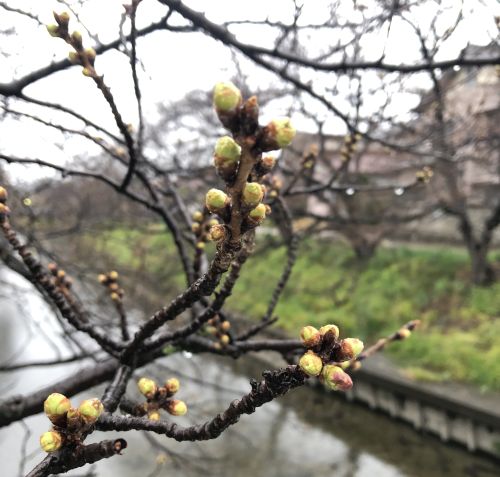 この写真は,昨日22日の朝に撮りました。天候は,冷たい雨でした。川面の様子は,このような具合です。岐阜市では桜の開花が宣言されたようですが,ここは「蕾ふくらむ」ぐらいでしょうか。当地では,26,27日の土日は天候が悪い予想が出てます。来週あたりに,ちらほら開花でしょうか。