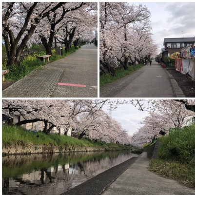 おまけに,桜並木の遊歩道の様子も。朝早くなので,屋台はまだ開いていません。土日のみ開きます。この週末は,夜のライトアップもされて,多くの人で賑わうことでしょう。