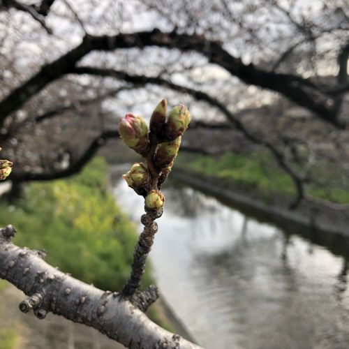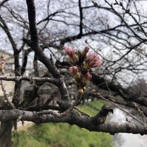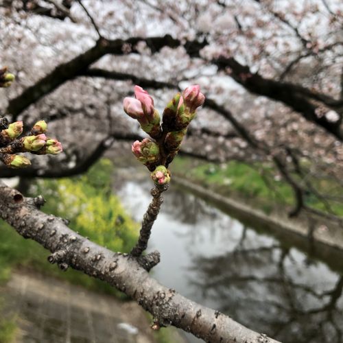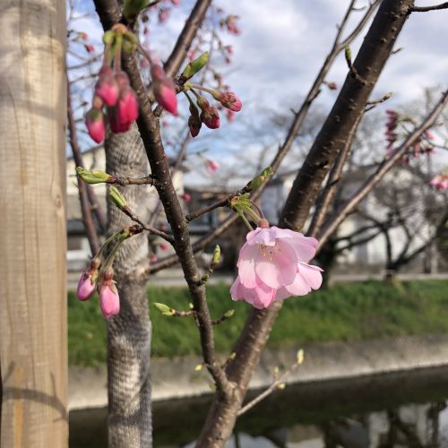 川面の様子は,こんなふうです。まだまだですが,3,4日すれば,ピンクになってくるでしょう。
